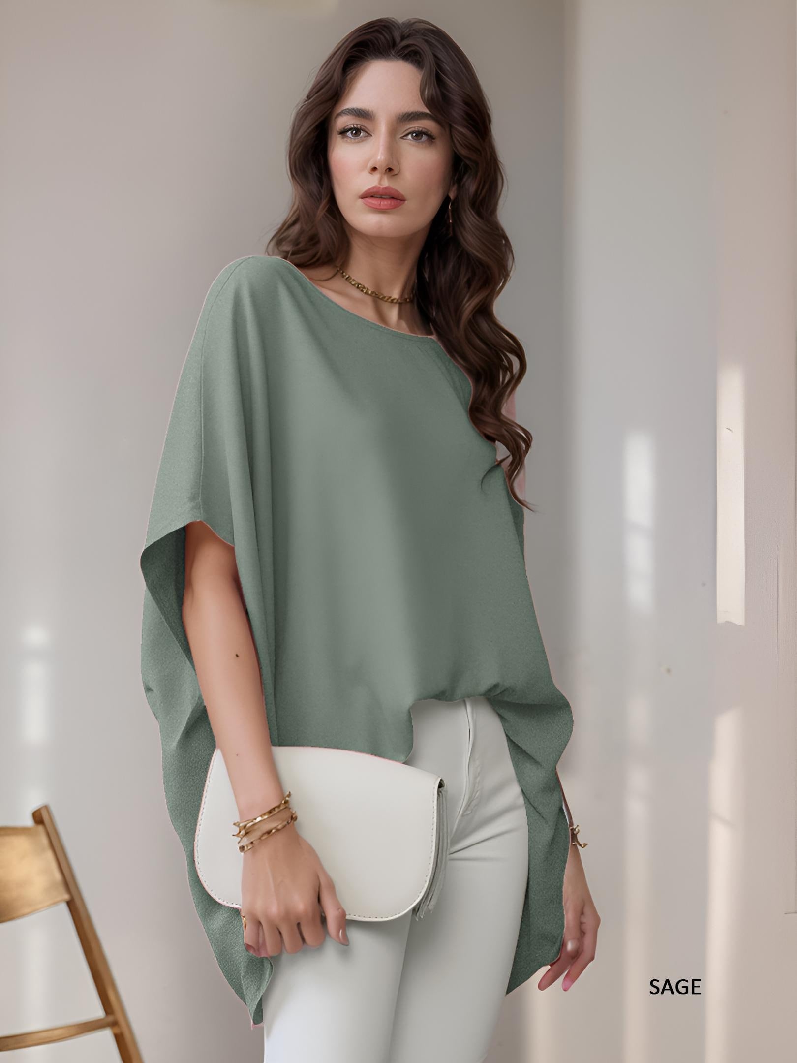 Elevate your everyday wardrobe with this oversized short sleeves tunic top in a buttery soft, breathable fabric. Its simple yet chic design offers effortless pairing with jeans, skirts, or leggings—ideal for casual outings, weekend getaways, or layering under your favorite jacket. Crafted to flatter a variety of body types, this versatile blouse adds comfort and understated elegance to any look.